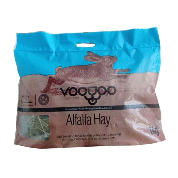 یونجه ی وودو پت شرکت اصفهان مکمل ، خوراک کامل و ایدهآلی برای تمامی نژادهای خرگوش ، خوکچه ی هندی ، همستر ، چینچیلا و سایر حیوانات خانگی کوچک میباشد.